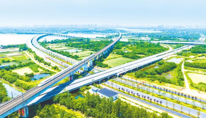 5月8日,鸟瞰武鄂黄黄 “三横三纵”快速道路“横一”鄂州吴楚大道段与武鄂高速、鄂咸高速等相互交织。 (湖北日报全媒记者 薛婷 摄)