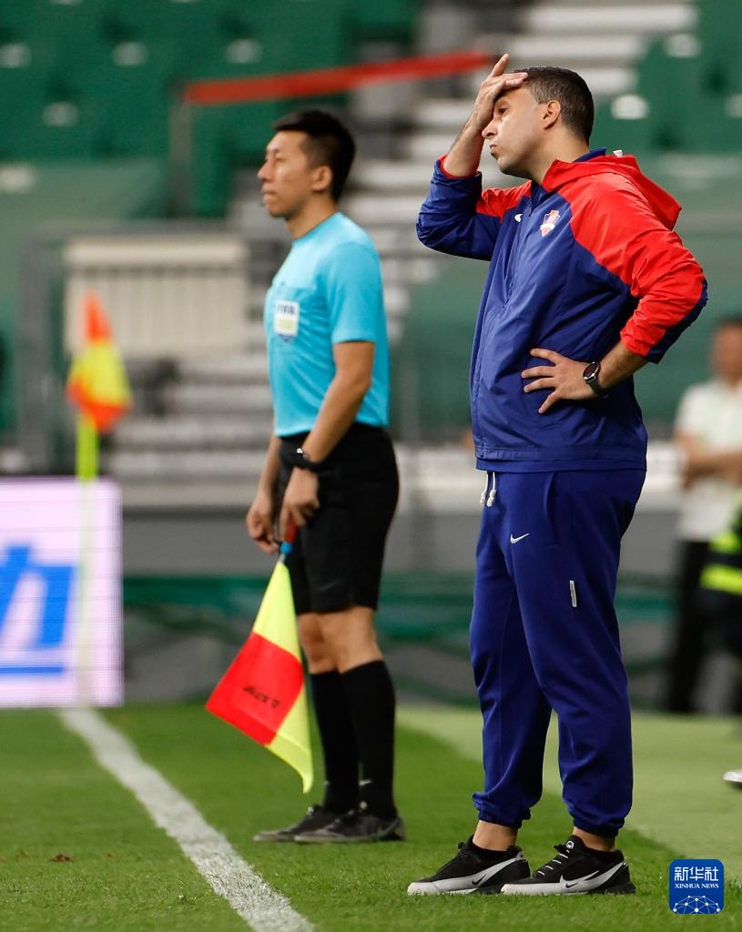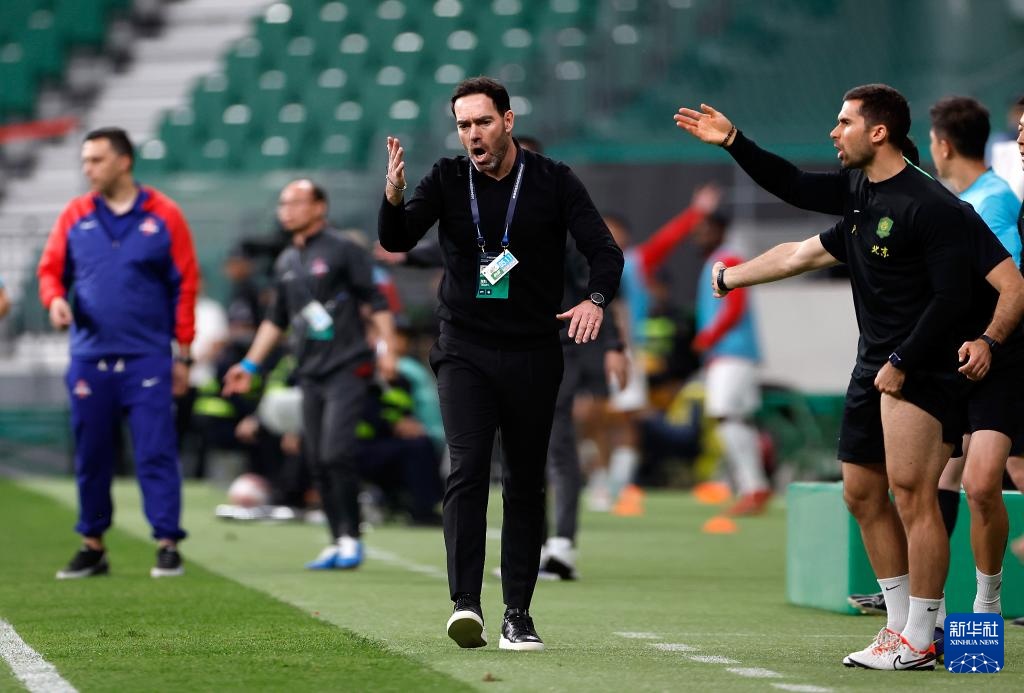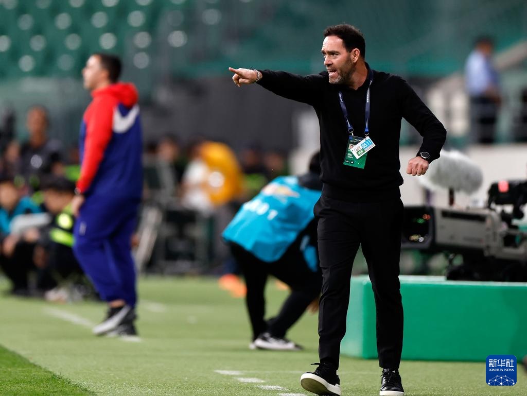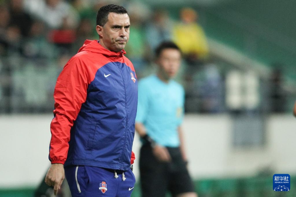 5月11日,梅州客家队主教练巴勃罗在场边观战。新华社记者 许雅楠 摄