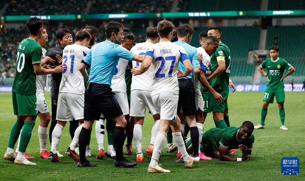 5月11日,双方球员在比赛中发生争执。新华社记者 王丽莉 摄
