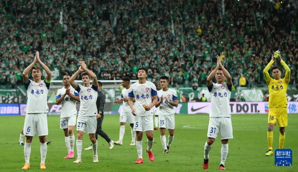 5月11日,梅州客家队球员在比赛后向球迷致意。新华社记者 许雅楠 摄
