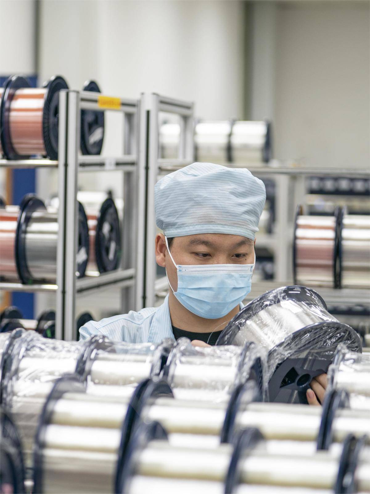 长飞光纤光缆股份有限公司车间,员工在仔细检查、测试即将出厂的多模光纤。(湖北日报全媒记者 魏铼 摄)