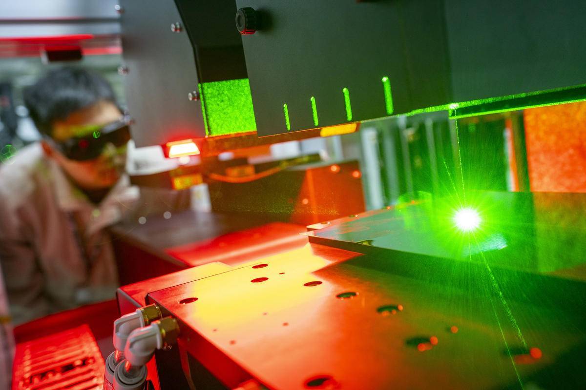 华工科技智能制造产业园未来城园区,技术人员调试半导体晶圆激光加工智能设备。(湖北日报全媒记者 魏铼 通讯员 张璨龙 俞智君 摄)