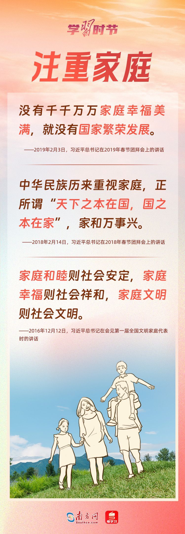 5月15日是国际家庭日。家庭是社会的细胞,是国家发展、民族进步、社会和谐的重要基点。习近平总书记心中始终牵挂着千家万户,高度重视家庭、家教和家风建设,强调不论时代发生多大变化,不论生活格局发生多大变化,我们都要重视家庭建设,注重家庭、注重家教、注重家风。家庭和睦、家教良好、家风端正,子女才能健康成长,社会才能健康发展。