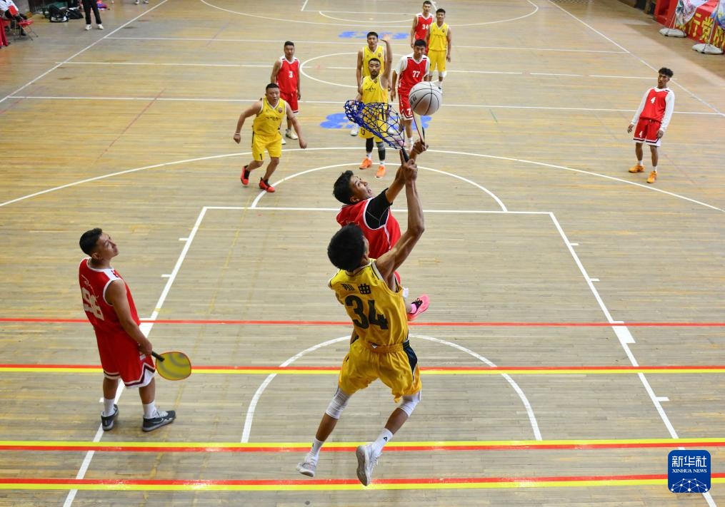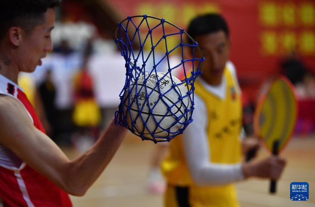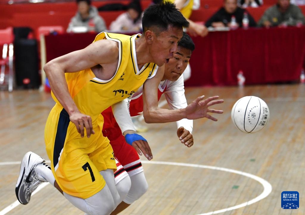 5月14日,山南队江涛(左一)在比赛中得分。新华社记者 晋美多吉 摄