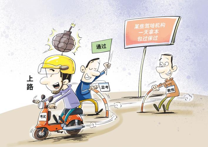 近日,媒体调查报道了“摩托车驾照速成班作弊产业链”,学员在教练和监考人员的各种“帮助”下顺利拿到驾照,一些驾培机构打着“一天拿本”“包过保过”的旗号招揽学员。