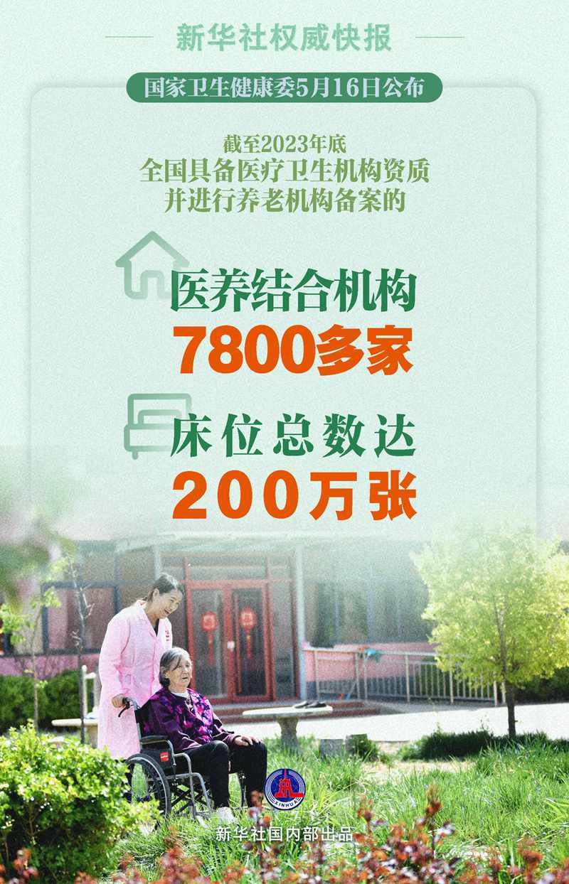 国家卫生健康委5月16日公布,截至2023年底,全国具备医疗卫生机构资质并进行养老机构备案的医养结合机构7800多家,床位总数达200万张。