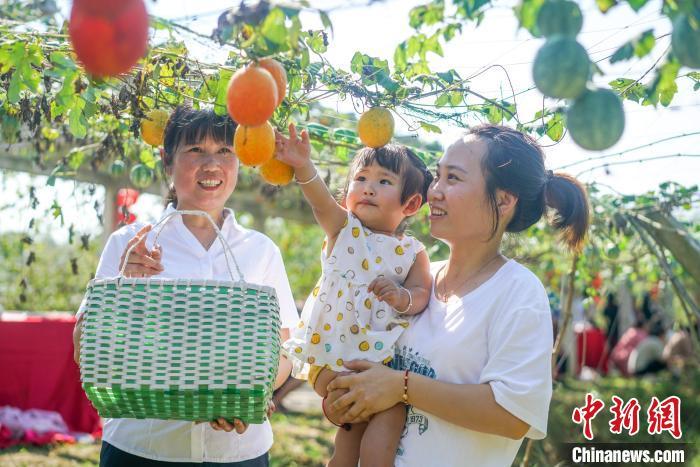 居民在吊瓜棚下享受丰收喜悦 煤山镇供图