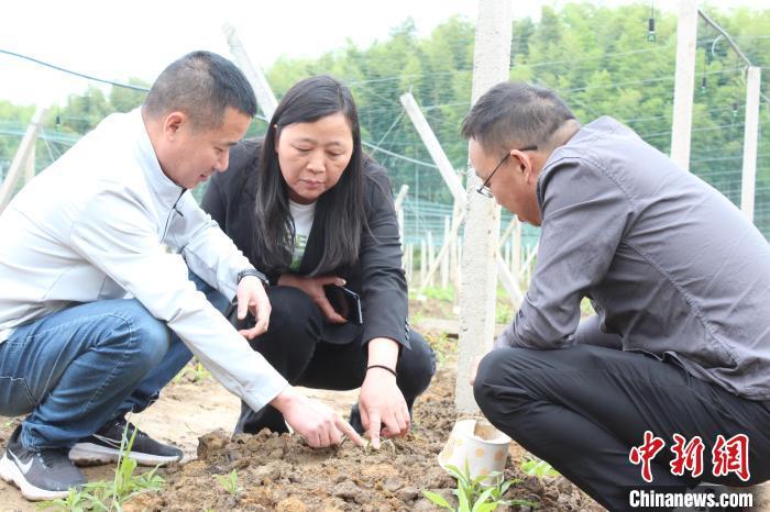 温志洪和村民在察看吊瓜苗长势 煤山镇供图