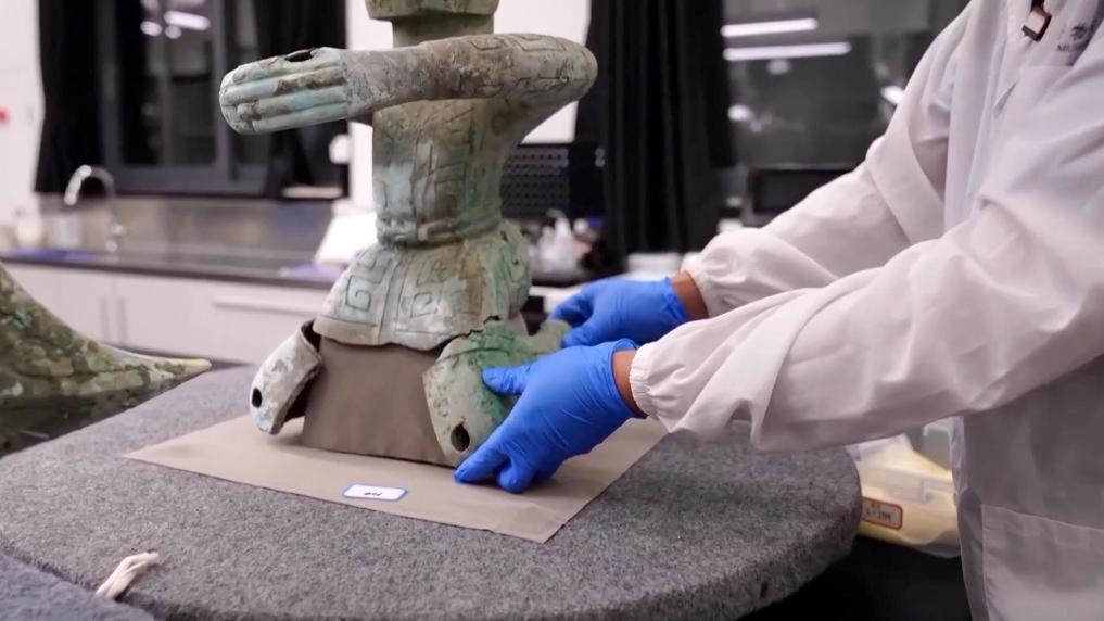 新技术不仅能够让参观者看到出土文物最原始的状态,同时也能够看到经过文保人员修复完整的器物。青铜,在这里绽放出大气磅礴、精美细致的光芒,也传递出中华多元文化相互间的交融与互动的信息。