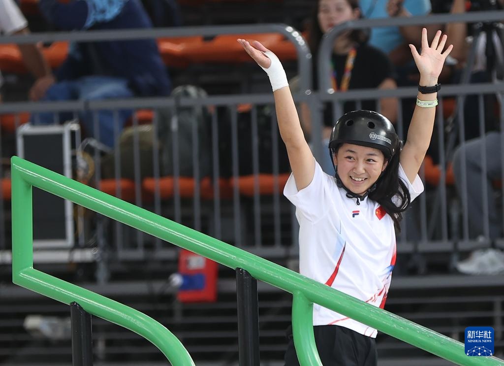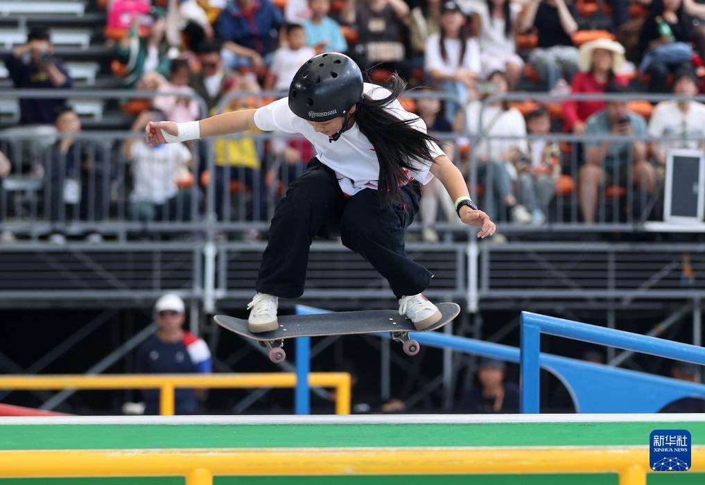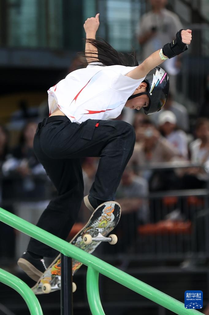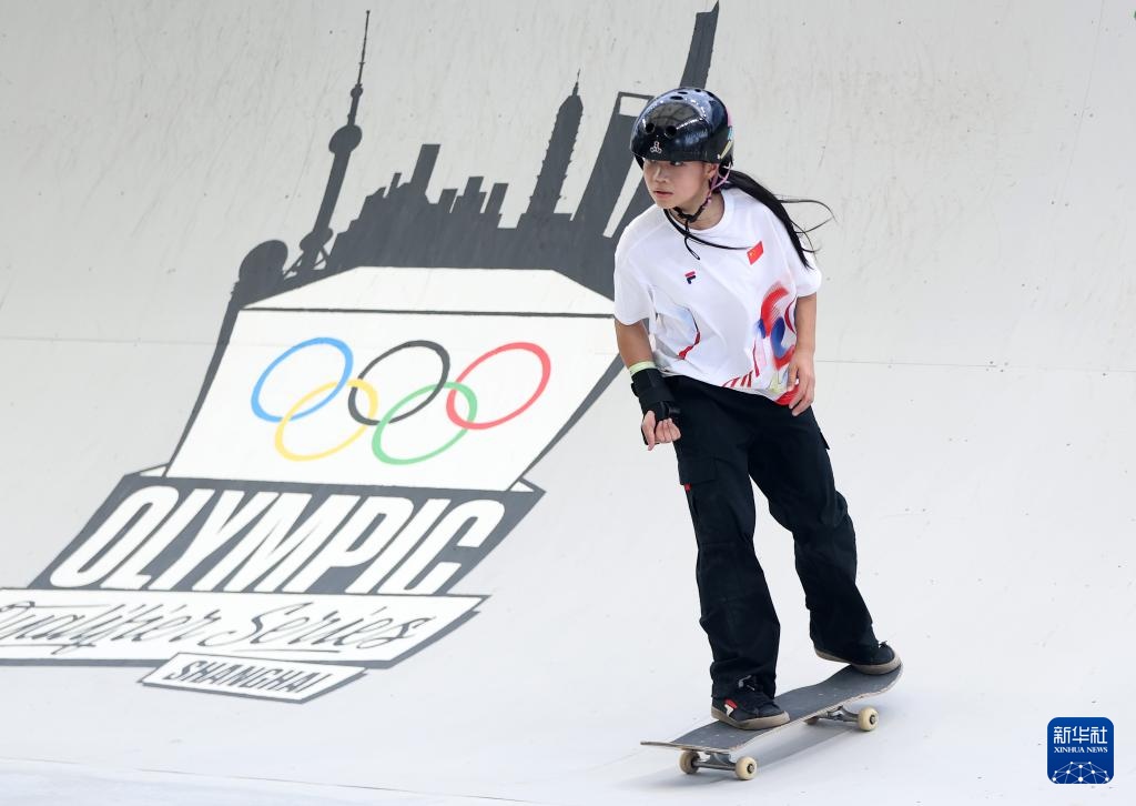 当日,巴黎奥运会资格系列赛上海站滑板女子街式预赛在上海举行。