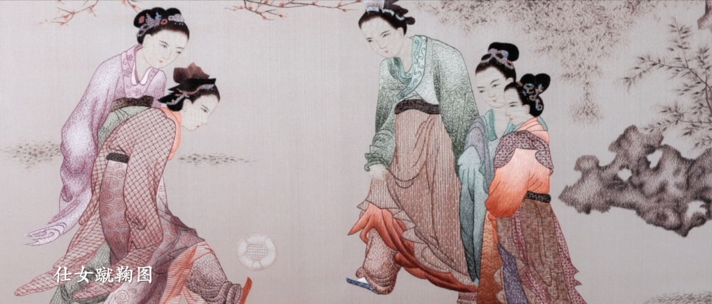 春色满园,皮球翻飞,淑女蹴鞠……这幅中国苏绣作品,记录了一段文明交流与互鉴的往事。