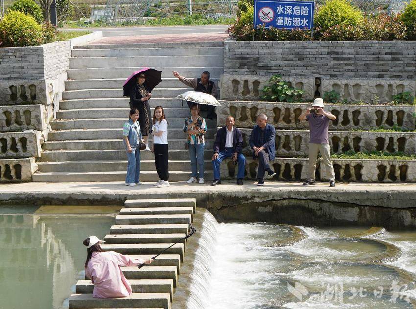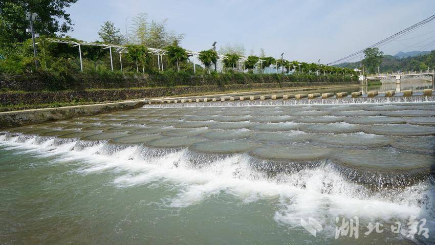 5月13日,记者在崇阳县港口乡石岭村东堡港鱼鳞堰看到,港河中水流清澈透亮,两岸石块护砌整齐,河道宽敞畅通;港堤垂柳依依形成天然廊道,拦水堰坝上吸引着一拨拨前来游玩打卡的游客,不时留下他们的欢声笑语,让宁静的乡野山村热闹了几分。