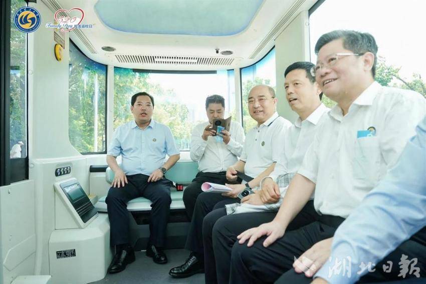 在南湖校区梅岭路,校友们坐上太空舱自动接驳车,体验无人驾驶智能车、欣赏校园风光。该车依托学校自动化、汽车、机电等学院在五菱新能源线控底盘上,打造适用于景区、港口、园区等特定场景的L4级自动驾驶系统。该自动驾驶系统涉及到人工智能技术、智能控制技术、新能源汽车三电技术、计算机技术、线控底盘技术等专业学科理论与应用技术知识,是自动驾驶感知、决策、控制等关键技术科研实验验证平台,可以为相关专业学生提供专业认知课程的沉浸式体验教学、自动驾驶相关专业课程的实践教学。