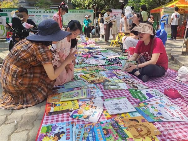 小朋友在摊位前选购自己喜欢的图书。 通讯员供图