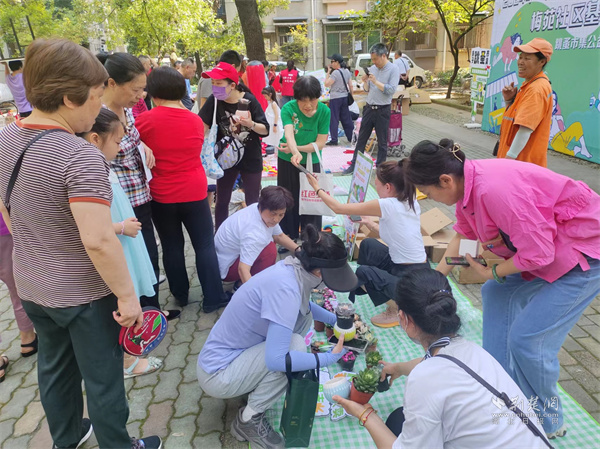 居民朋友在盆栽认领摊位前捐赠爱心。 通讯员供图