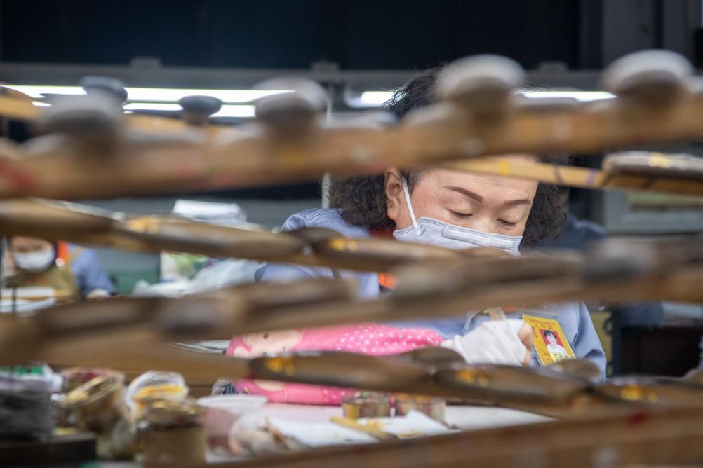 后来,一直喜欢绘画的幸春燕找到美工师傅苦学2个月,以第二名的成绩考入美工车间,开始从事更复杂的工序,为木梳绘彩、上漆。17个年头过去,她当上了车间的残疾员工代表,管理40多名工人,与同为残疾员工的丈夫日子越过越美。