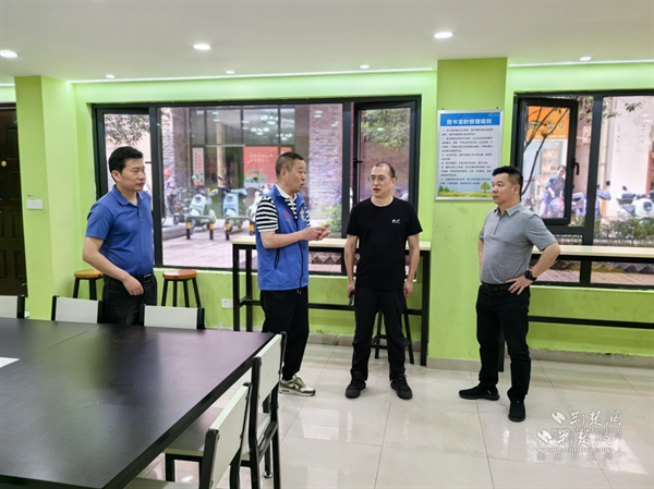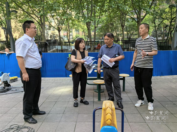 武昌市政小区办点结对小组在万科金域华府小区儿童乐园踏勘现场。 通讯员供图