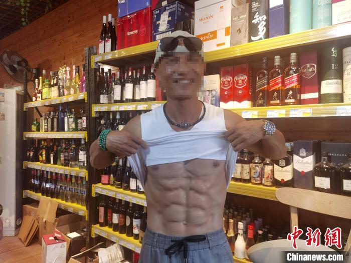 在涠洲岛期间,雷某宝白天在一家酒庄里做仓管,晚上做配送,每月有3000多元的收入,闲时坚持健身,已练就了一副健美身材。雷某宝近日接受采访时,得意地秀出他的八块腹肌,这是他在戒毒期间自律的收获。