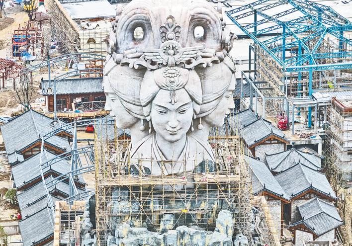 5月20日,宜都市宋城三峡千古情项目正在加紧推进,项目四大主体建筑已经拔地而起,雏形已现,其中,标志性建筑王昭君雕像揭开神秘面纱。该项目预计6月20日建设完工,7月正式开业。项目位于宜都鲟龙湾文化旅游产业园内,地处长江、清江交汇处,规划占地111亩,项目建设有三峡千古情主场馆、游客集散中心、游乐广场及特色街区、演艺综合体等,将深入挖掘巴楚文化、三峡文化、屈原文化、昭君文化、三国文化,建设极具特色和底蕴的永久性旅游目的地,是宜昌“四个重大”项目之一,填补了目前湖北省大型旅游演出项目空白。