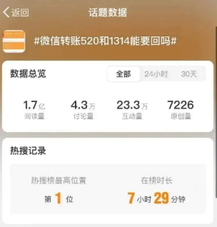 话题“微信转账520和1314能要回吗”