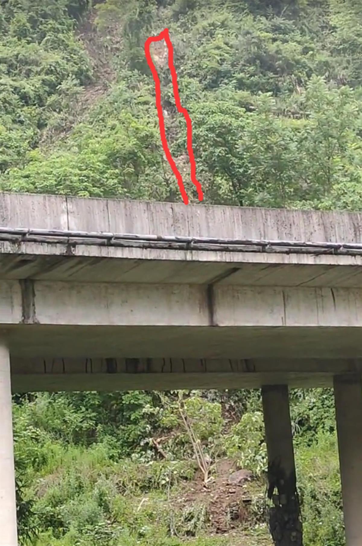 5月21日早晨,重庆市黔江区,G65包茂高速渝湘段阿蓬江收费站附近,高速公路高架桥的一根桥墩被山上滚落的石块砸中受损。极目新闻记者了解到,受损桥墩附近路段已经实施交通管制,道路养护部门正在研究受损桥墩的维修方案。