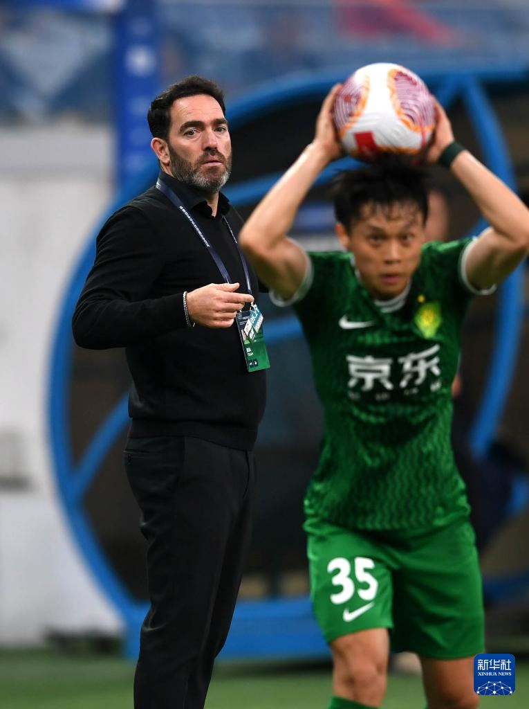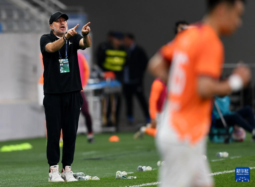 5月21日,青岛海牛队主教练亚森在场边指导。新华社记者 李紫恒 摄