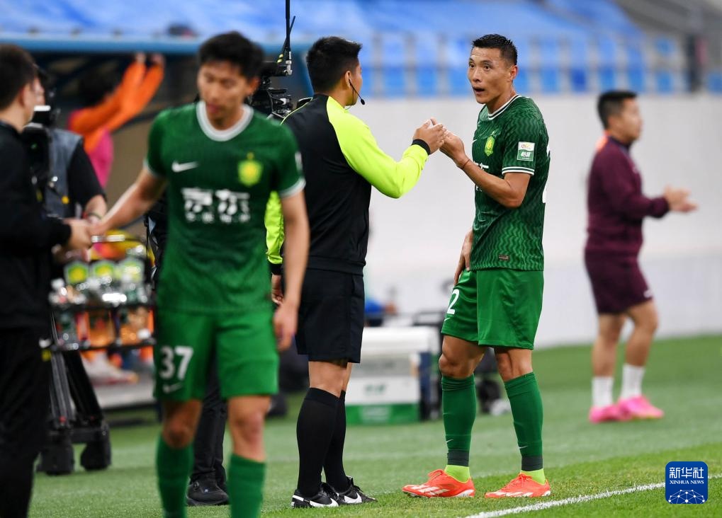 5月21日,北京国安队球员于大宝(右二)在比赛中。新华社记者 李紫恒 摄