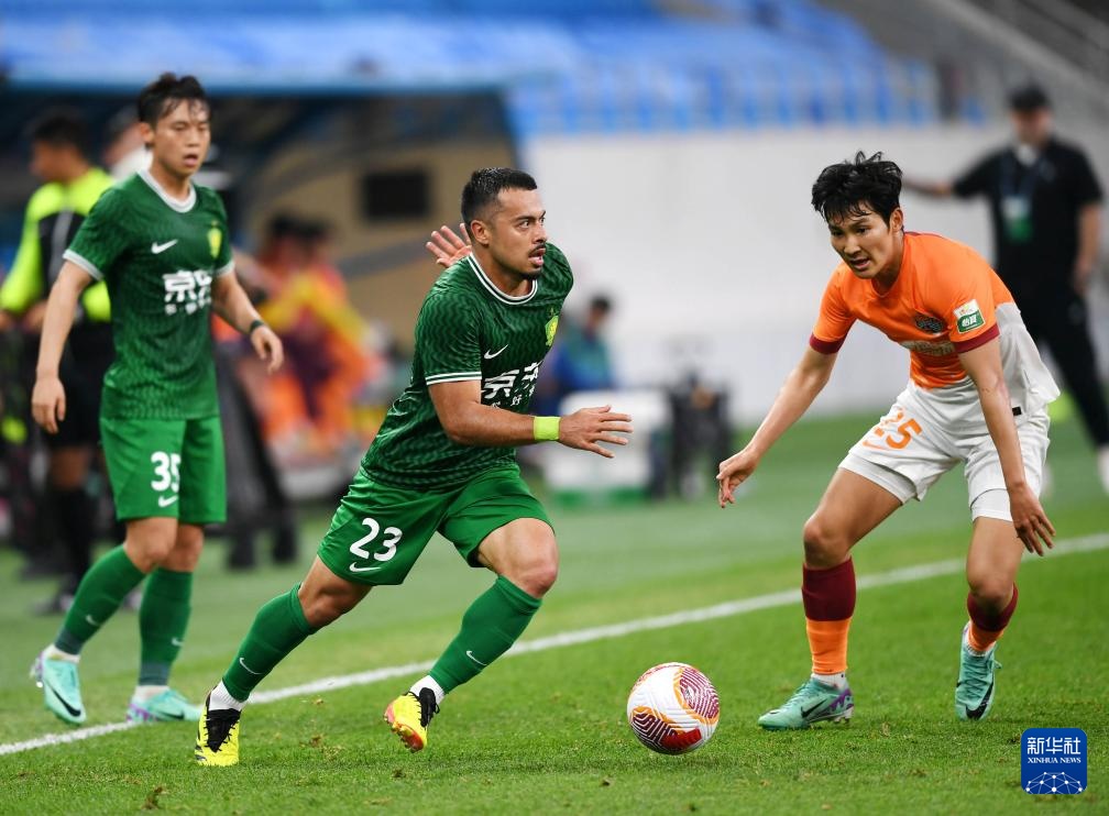 5月21日,北京国安队球员李可(中)在比赛中。新华社记者 李紫恒 摄