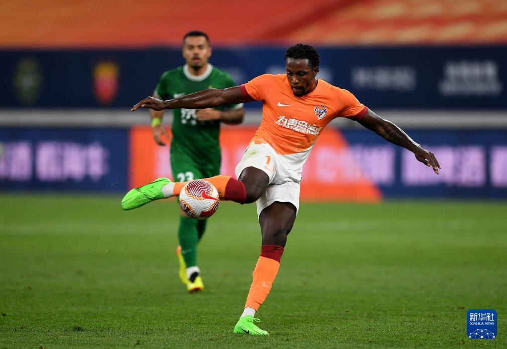 5月21日,青岛海牛队球员博阿基耶(前)在比赛中。新华社记者 李紫恒 摄
