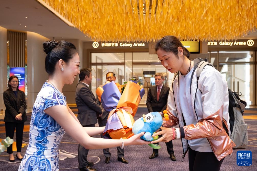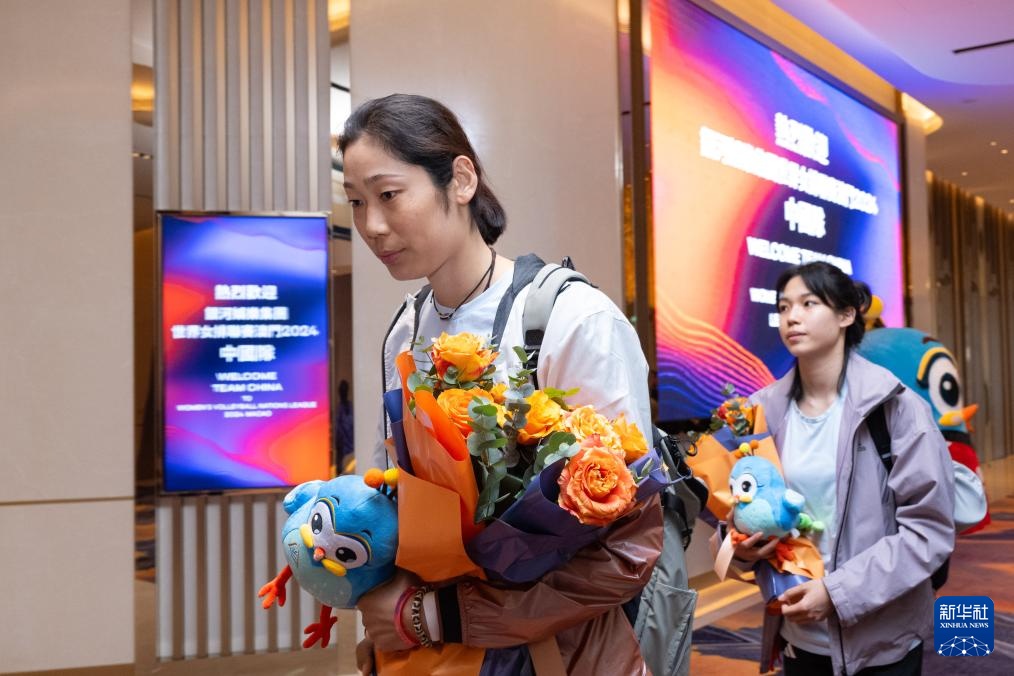 当日,中国国家女子排球队抵达澳门,参加5月28日至6月2日在澳门银河综艺馆举行的2024世界女排联赛澳门站赛事。