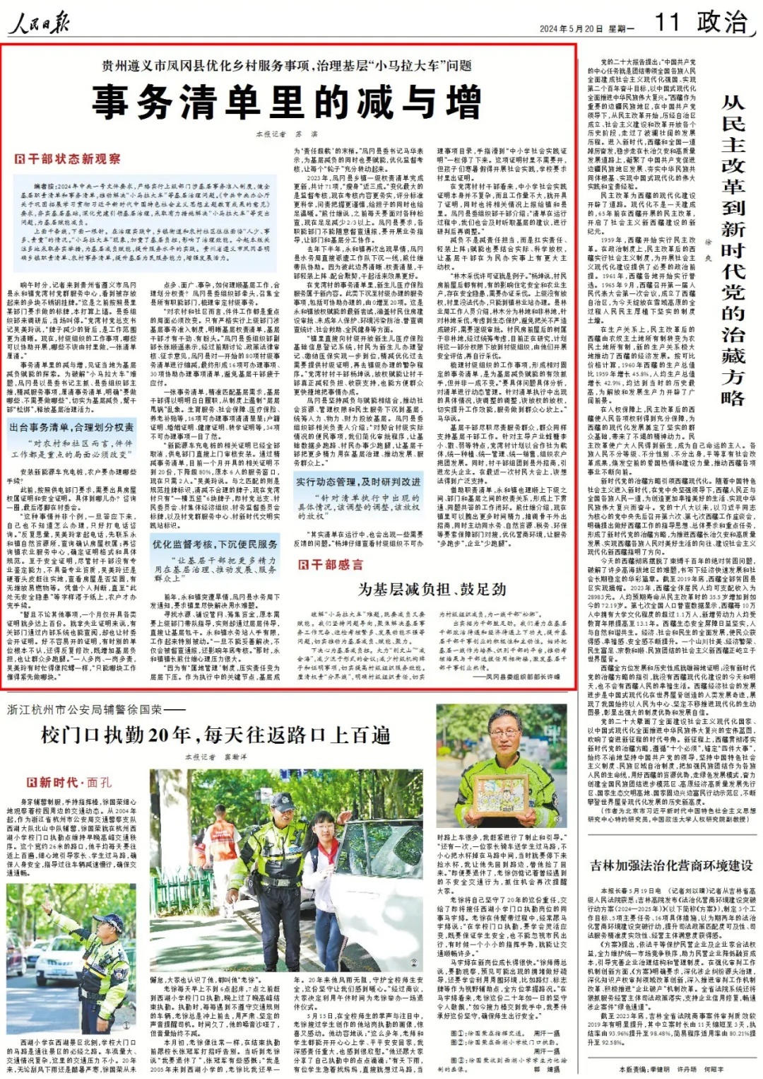 上面千条线,下面一根针。在治理实践中,乡镇街道和农村社区往往面临“人少、事多、责重”的情况。“小马拉大车”现象,加重了基层负担,影响了治理效能。今起本版关注多地采取务实举措,为基层减负赋能,提升服务水平的实践。贵州省遵义市凤冈县明确乡镇职责清单、农村事务清单,提升基层为民服务能力,增强发展活力。
