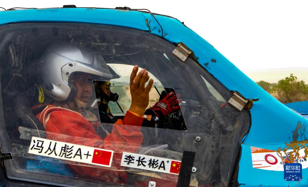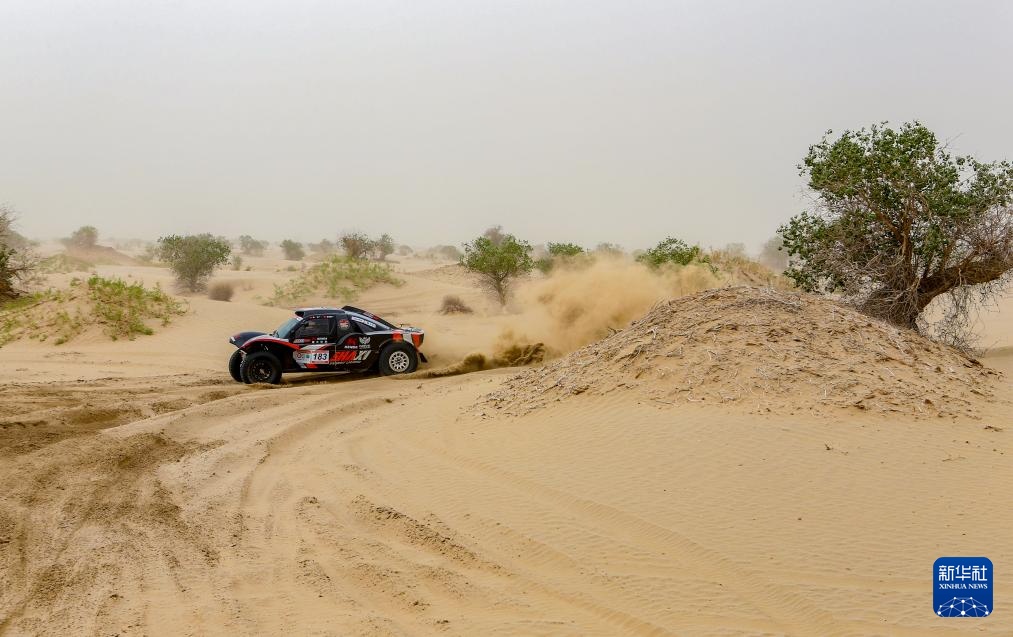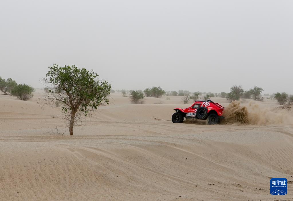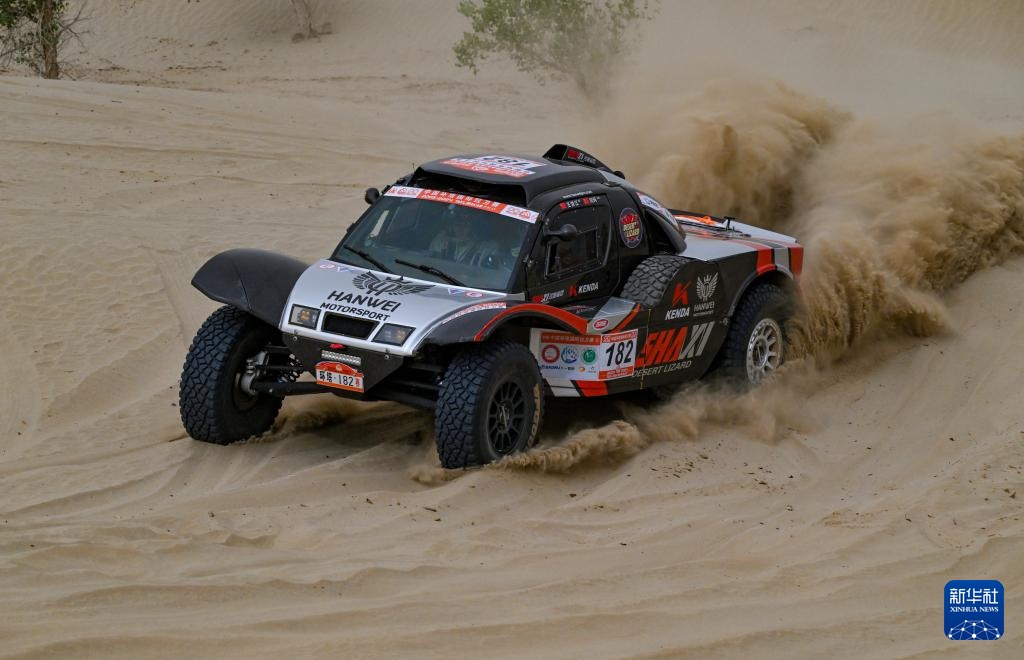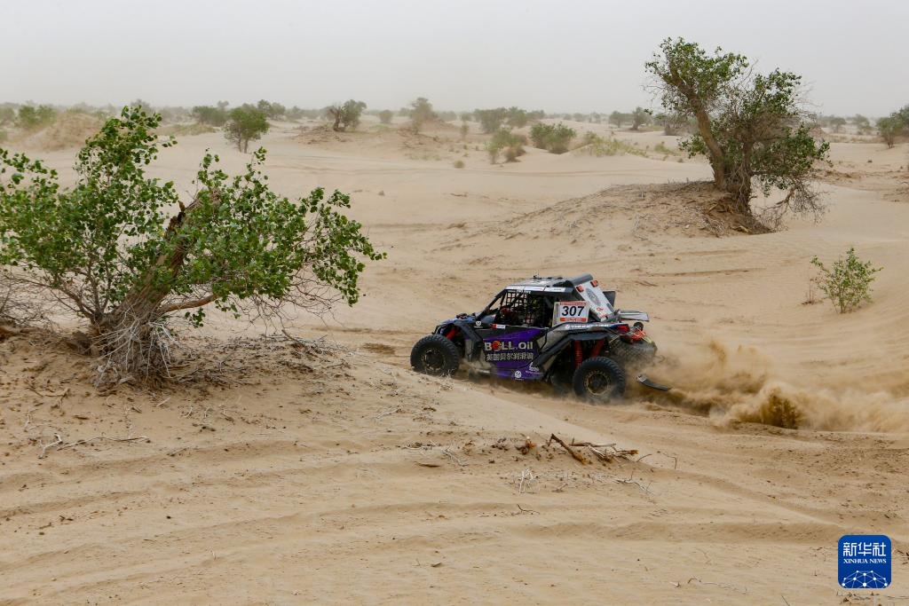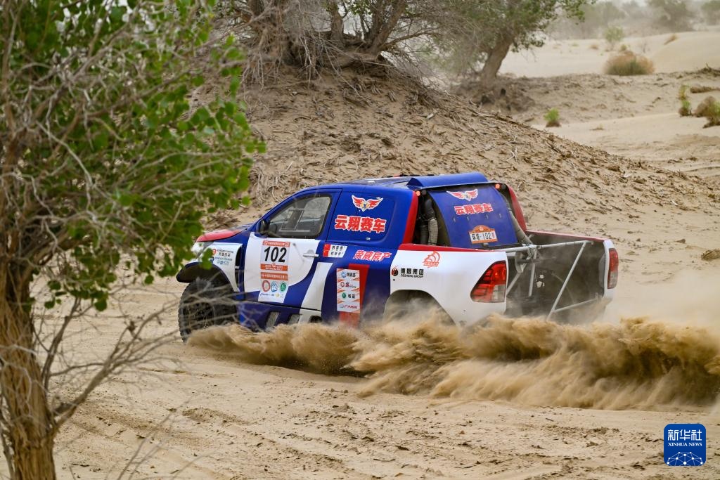 5月23日,黑龙江龙嘉先越拉力艺车队车手张德金、领航员陈庆开驾驶赛车在比赛中。新华社记者 陈朔 摄