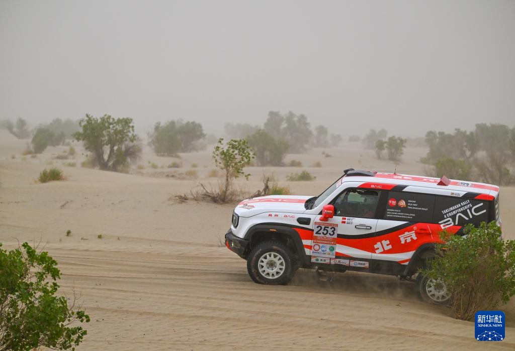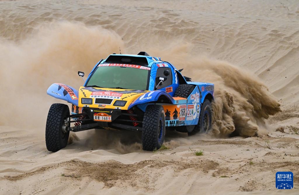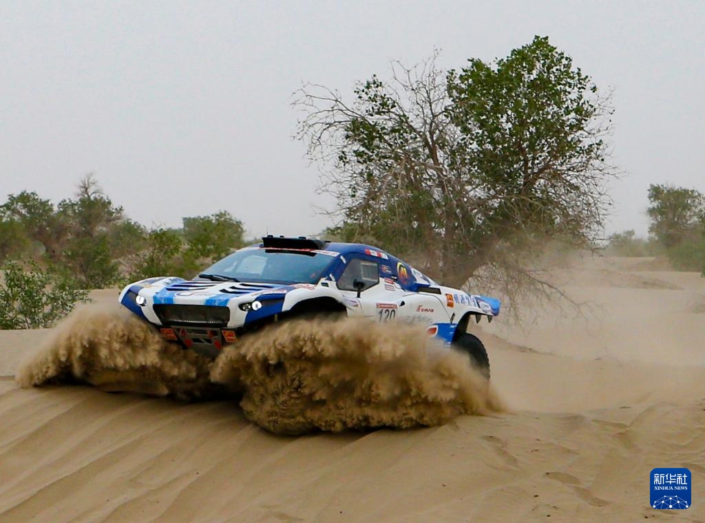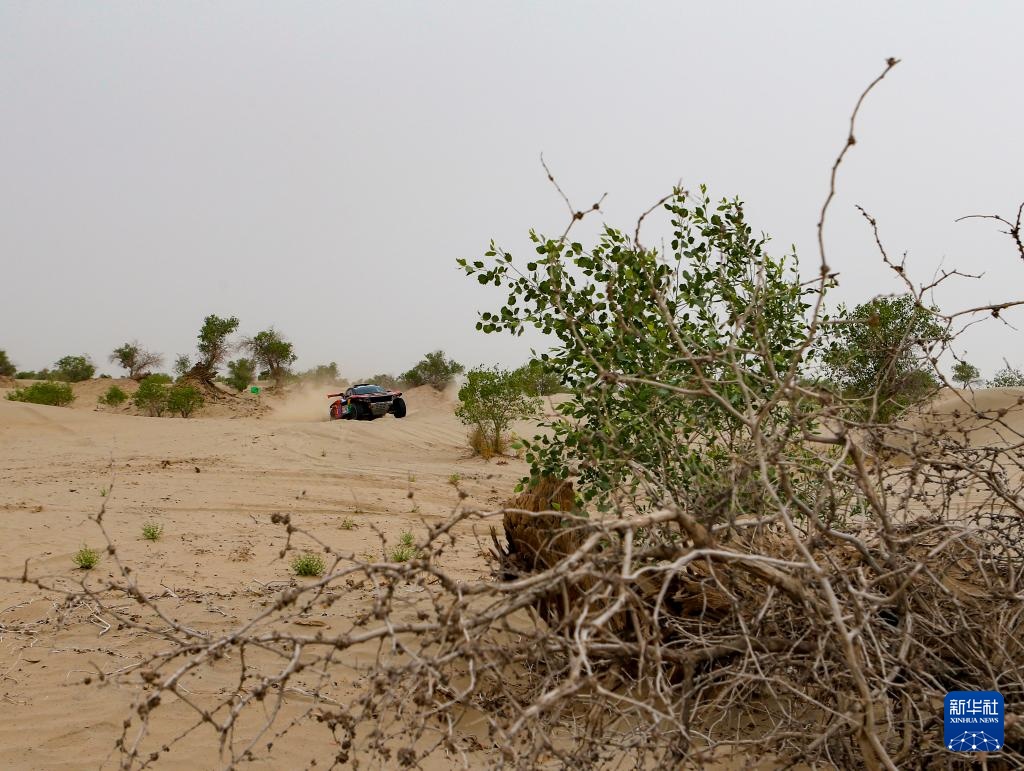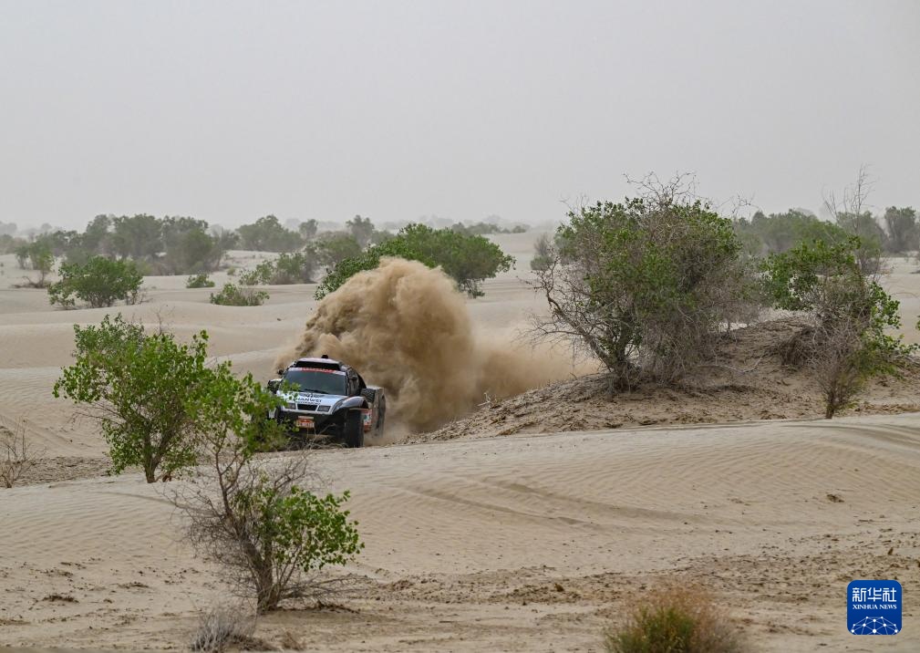 5月23日,北京汽车车队车手陈震、领航员赵凯驾驶赛车在比赛中。新华社记者 陈朔 摄