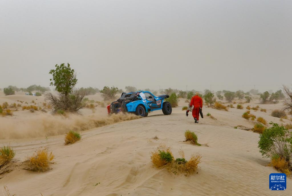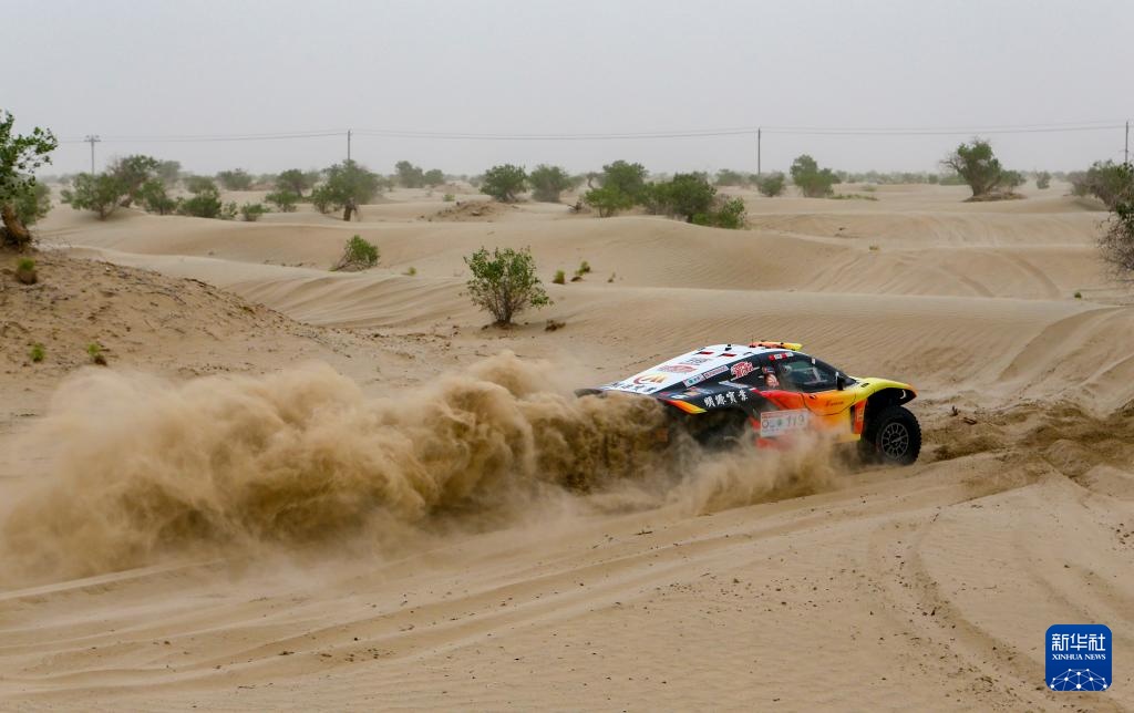 5月23日,沙蜥减震器车队车手吴强、领航员李润圃驾驶赛车在比赛中。新华社记者 陈朔 摄