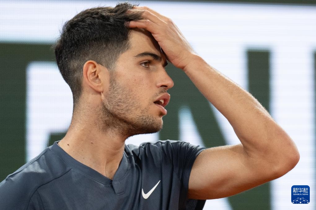 5月26日,阿尔卡拉斯在比赛中。新华社记者 孟鼎博 摄