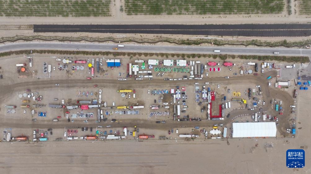 这是5月27日拍摄的2024年中国环塔国际拉力赛和田洛浦大营(无人机照片)。新华社记者 陈朔 摄