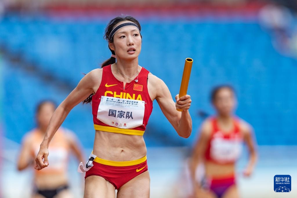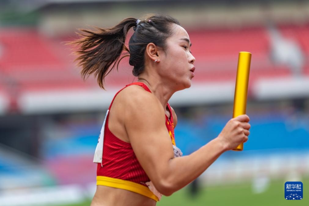 5月28日,国家队第一棒梁小静在比赛中。新华社记者 黄伟 摄