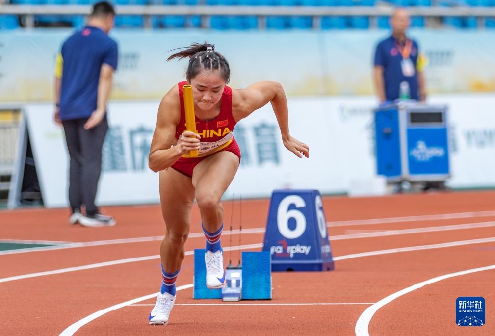5月28日,国家队第一棒梁小静在比赛中起跑。新华社记者 黄伟 摄