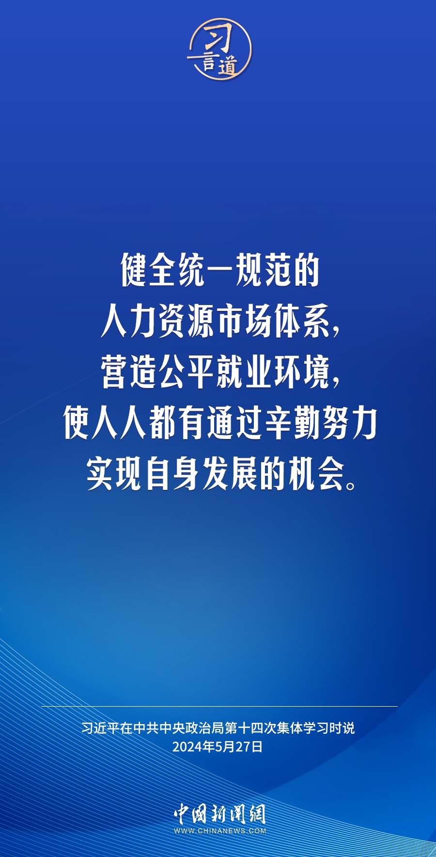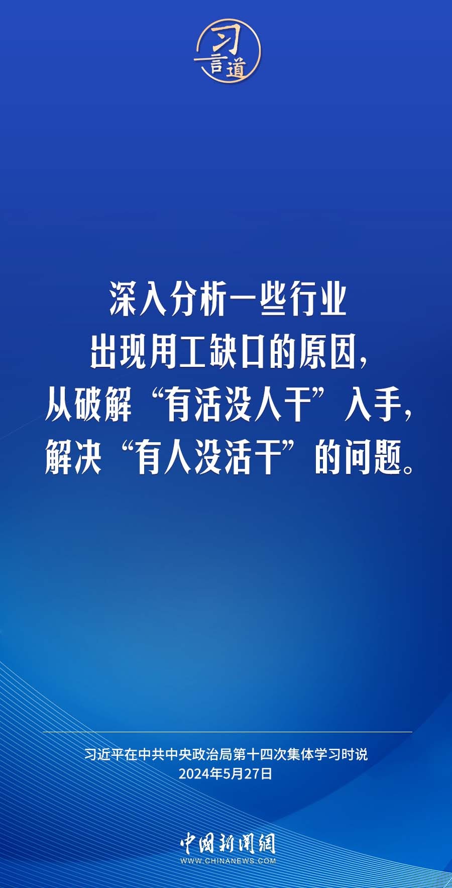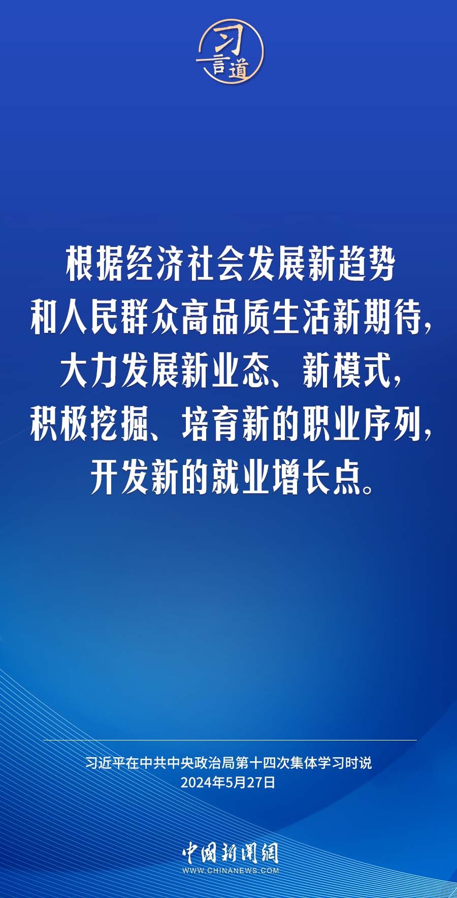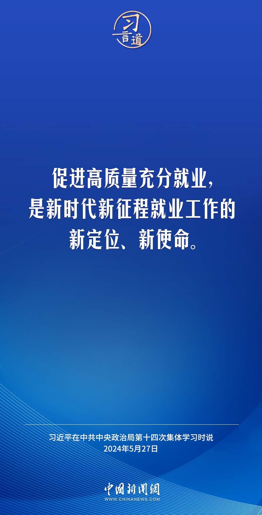 中共中央政治局5月27日下午就促进高质量充分就业进行第十四次集体学习。中共中央总书记习近平在主持学习时强调——