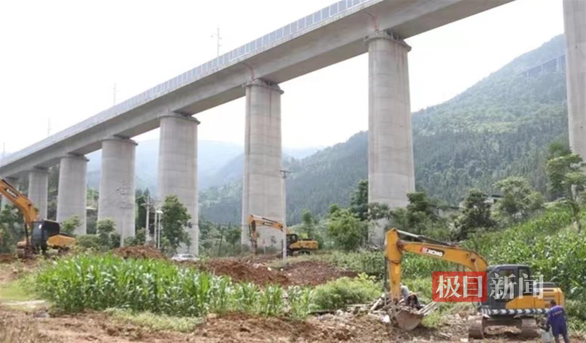 5月26日,在湖北省巴东县溪丘湾乡葛藤坪社区金叶湾小区外,工人正在对该片区域荒地进行杂草清理、杂物清运、土地平整,将荒地分割成整齐的菜地。