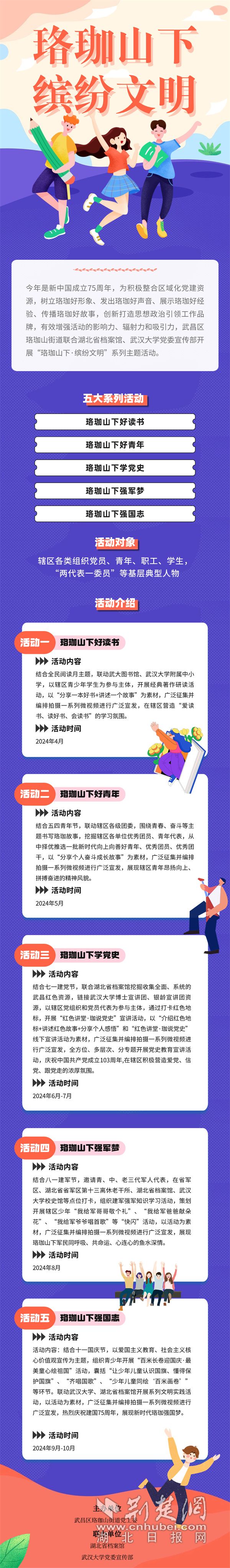 荆楚网(湖北日报网)讯(通讯员 熊雅婷)2024年武昌区珞珈山街道党工委联合湖北省档案馆、武汉大学党委宣传部开展“珞珈山下·缤纷文明”系列主题活动。“七一”建党节越来越近,我们即将迎来中国共产党成立103周年,“珞珈山下学党史”短视频征集活动火热开启。