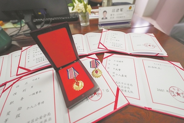 据了解,刚满50岁的邱建军,1994年从武汉市人民警察学校毕业后被分配到江汉区分局刑侦大队工作。2012年,他主动申请支援基层,被调到汉兴街派出所。从警30年来,他始终把守护群众生命财产安全作为毕生事业追求,工作中,敢于担当,骁勇善战,无论犯罪分子如何凶残,总是身先士卒,冲锋在前,先后3次因处置险情负伤,是警营里有名的“拼命三郎”。他先后荣立个人三等功2次、嘉奖6次。