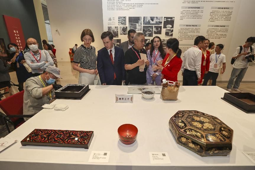 2023年5月28日,北京,推光漆器匠人为驻华使节展示技艺。