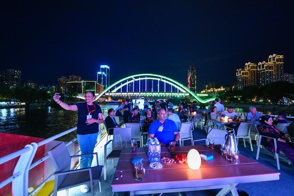 5日晚,外交官们在欢声笑语中乘船,体验大河奔流的独特魅力。山峦、古塔、桥梁与楼阁被霓虹灯点亮,黄河之滨流光溢彩。市民漫步在黄河沿岸的步道上,悠闲而幸福的场景令外交官们不禁称赞。