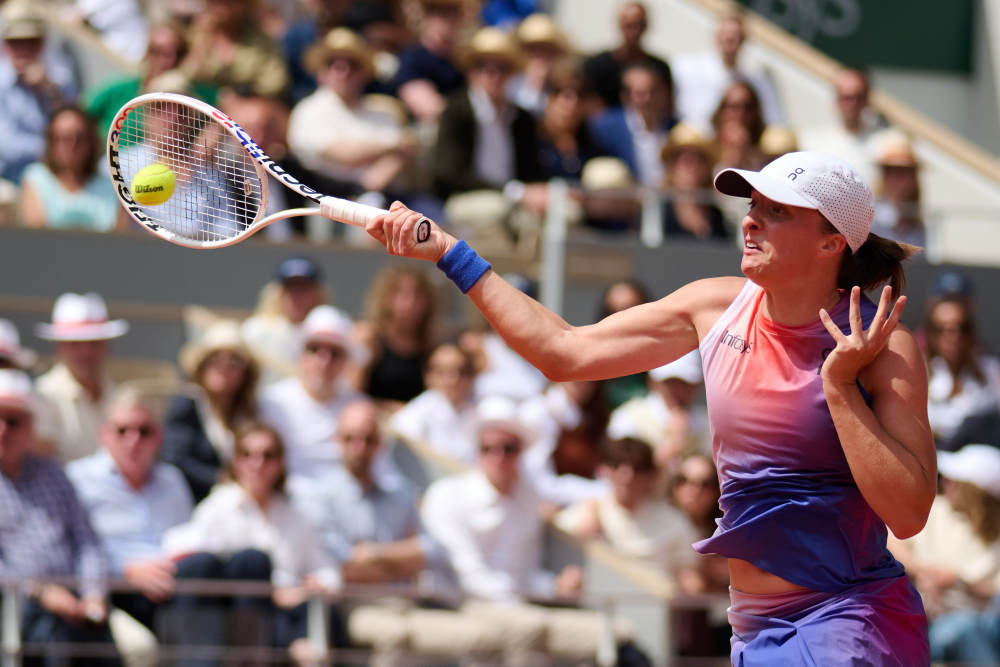6月8日,斯维亚特克在比赛中回球。新华社记者 孟鼎博 摄