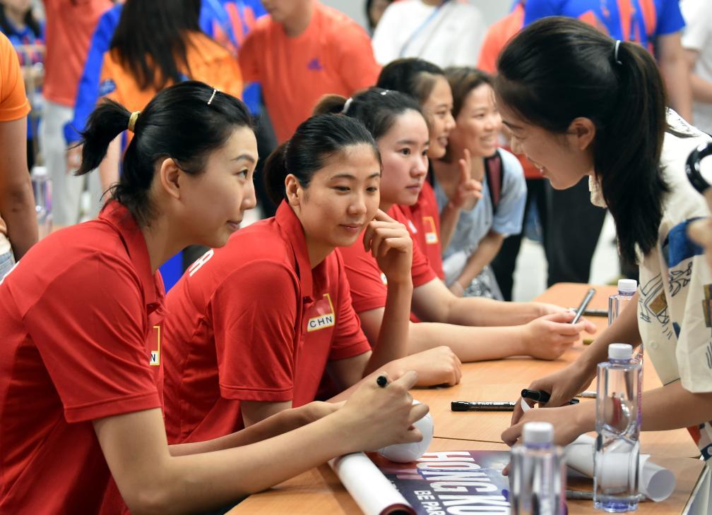 新华社香港6月8日电(记者王子江)正在香港备战世界女排联赛中国香港站比赛的中国女排8日举行“中国女排全接触”活动,数千名球迷到场为中国队加油,现场气氛热烈。
