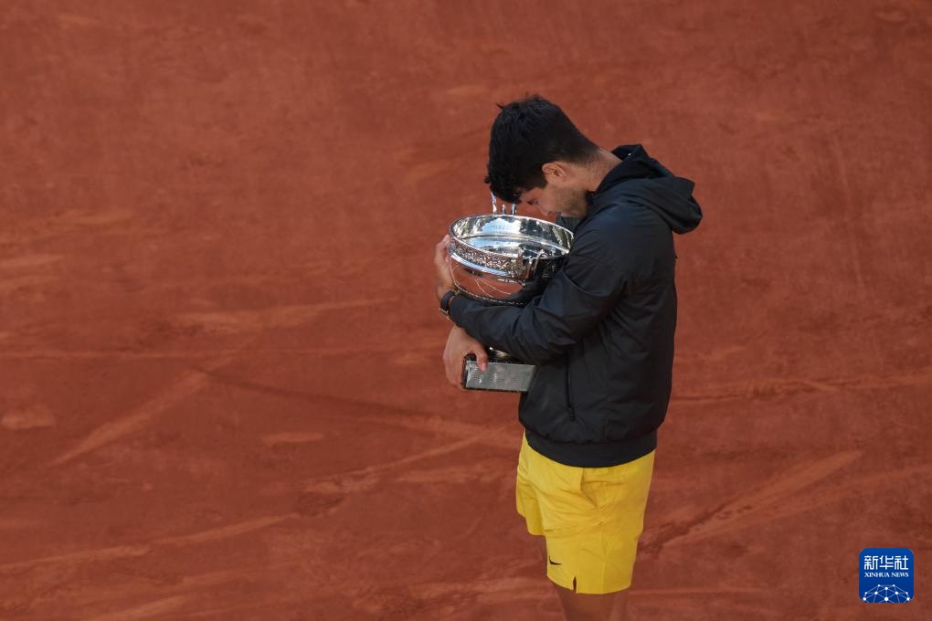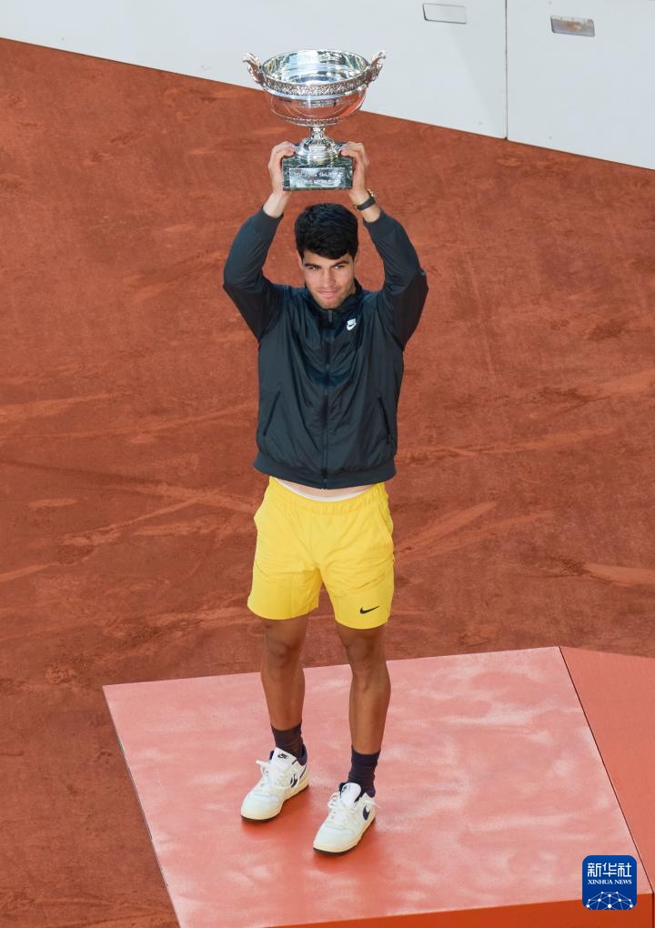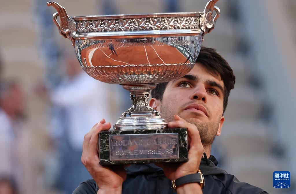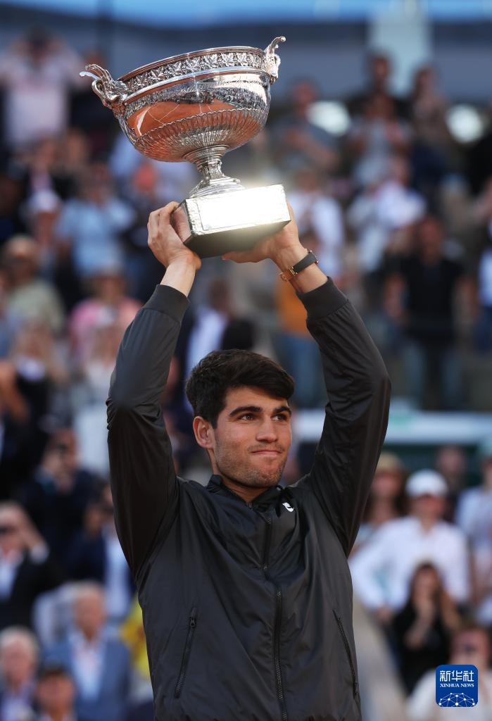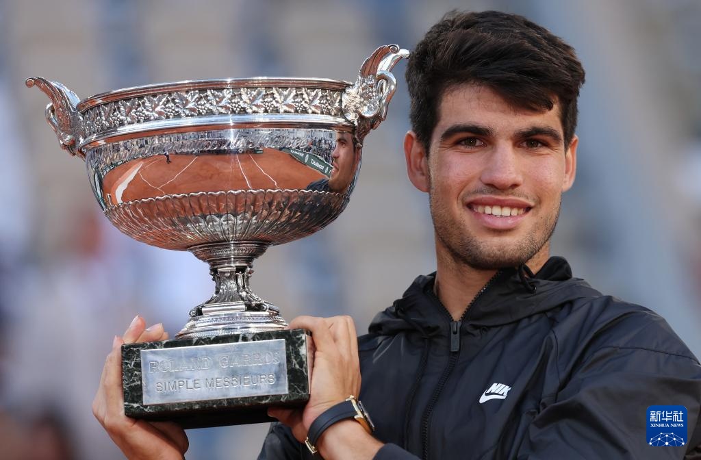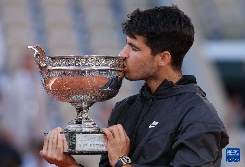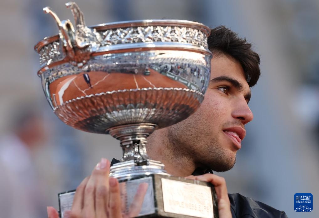 6月9日,阿尔卡拉斯捧起冠军奖杯。