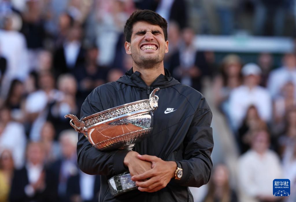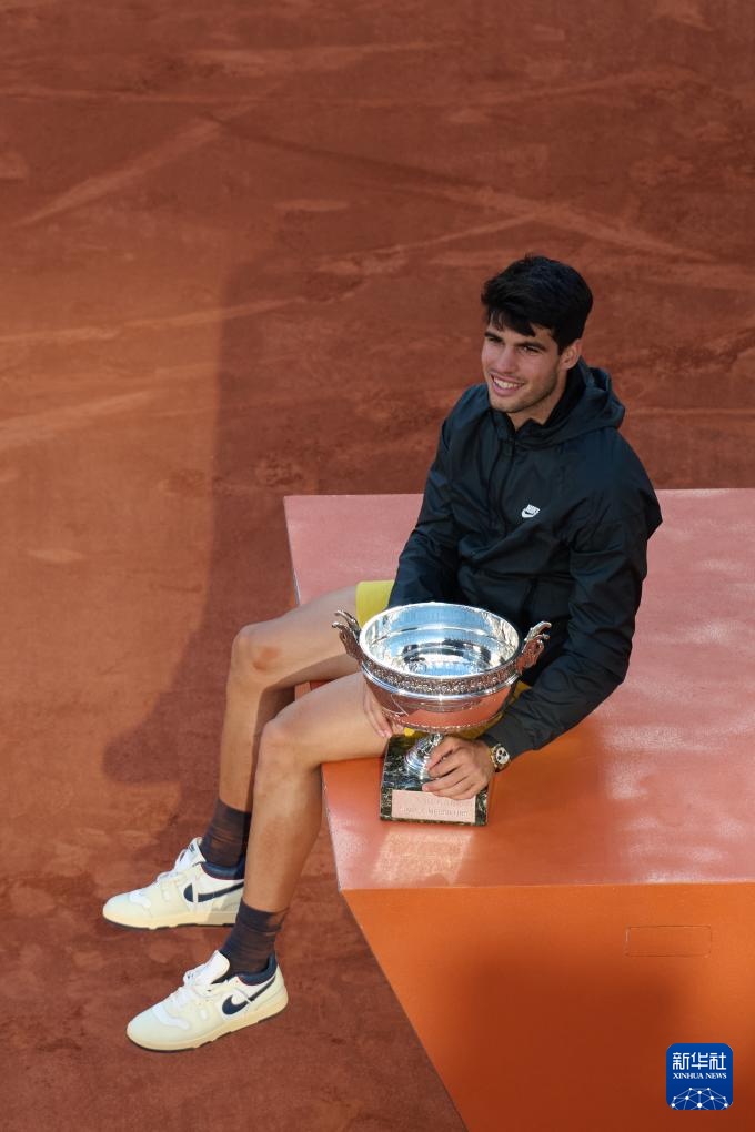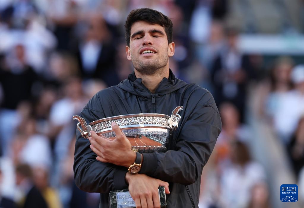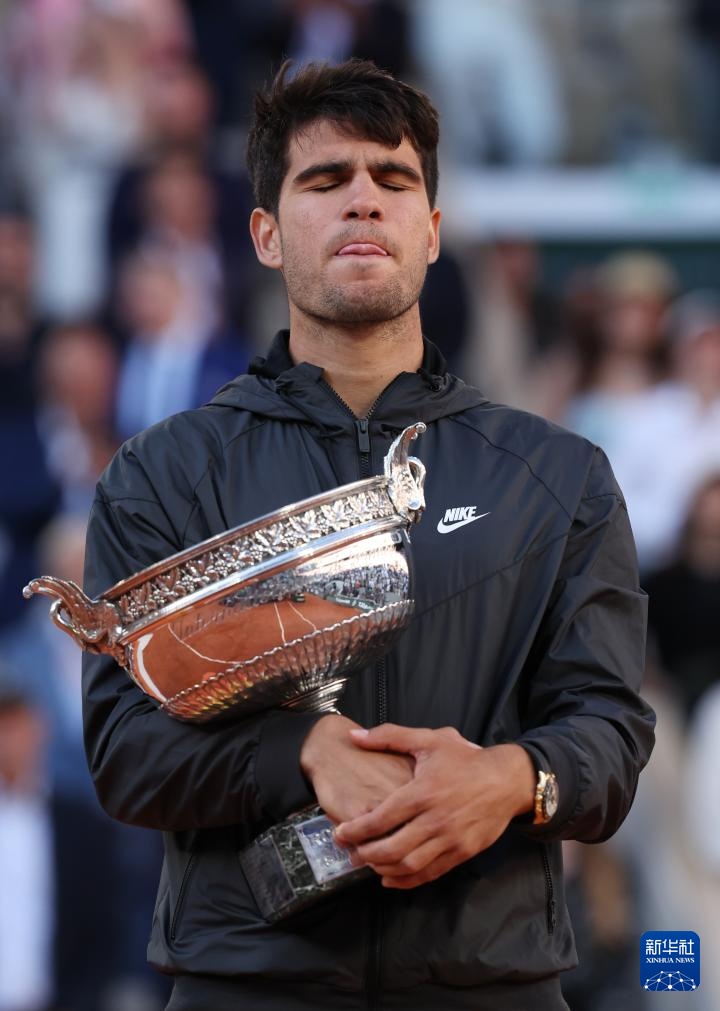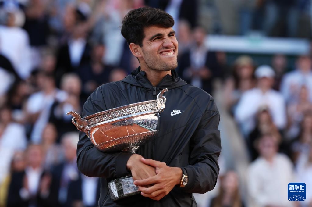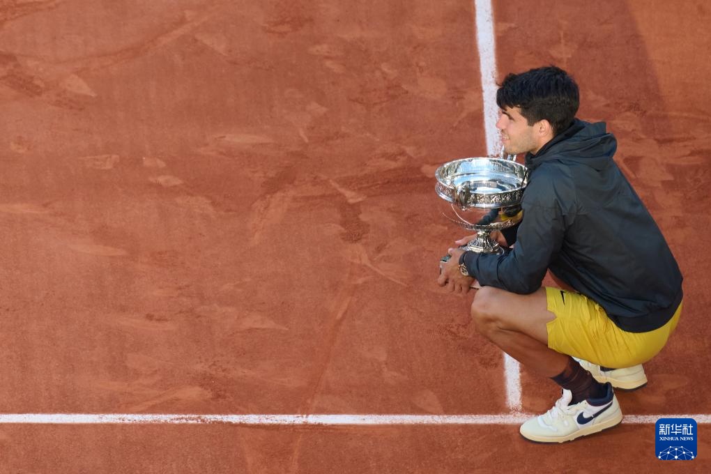6月9日,阿尔卡拉斯捧起冠军奖杯。