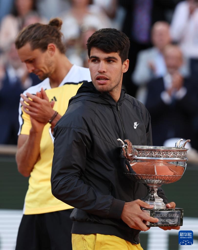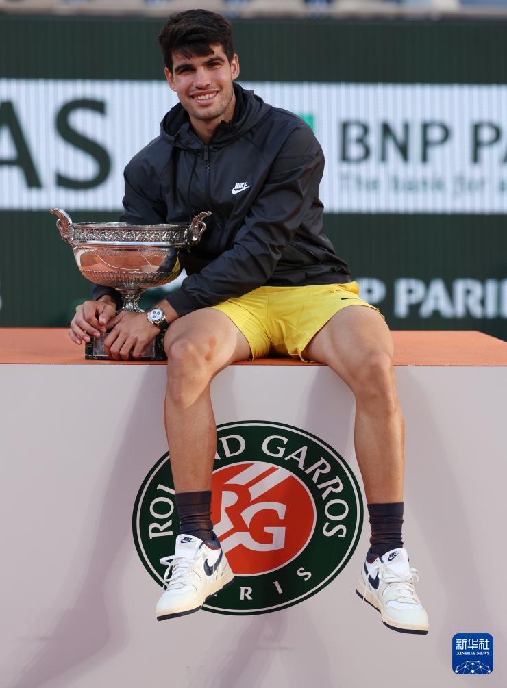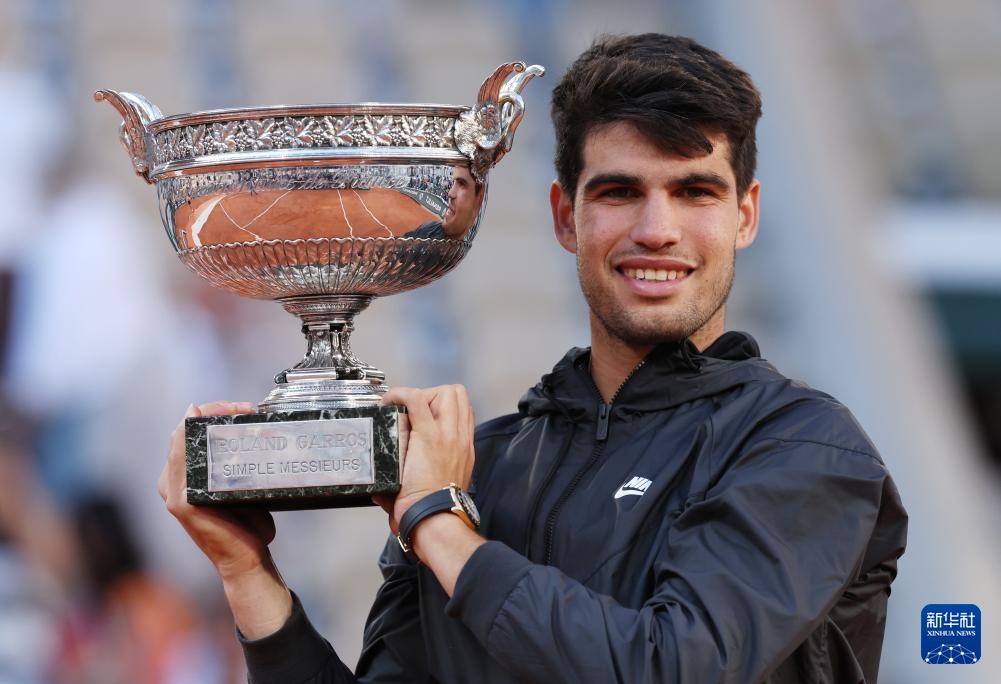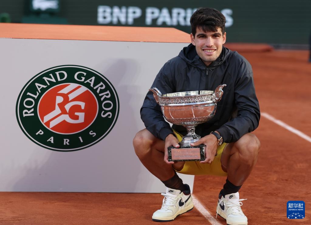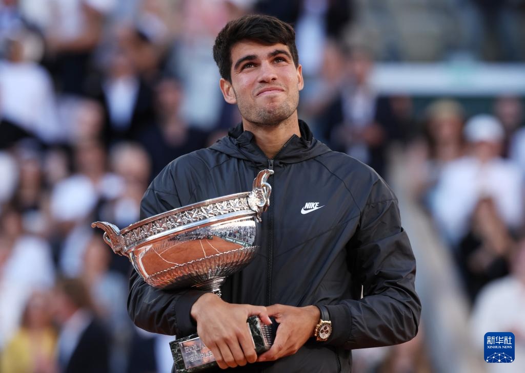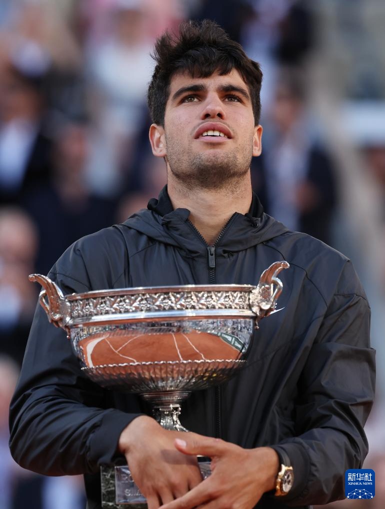 6月9日,阿尔卡拉斯捧起冠军奖杯。
