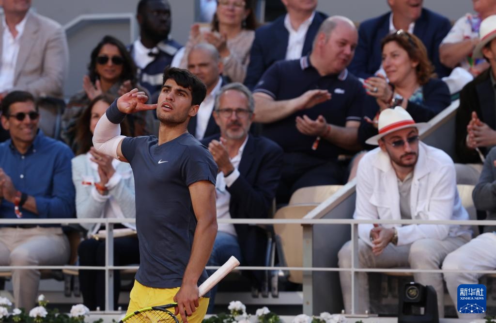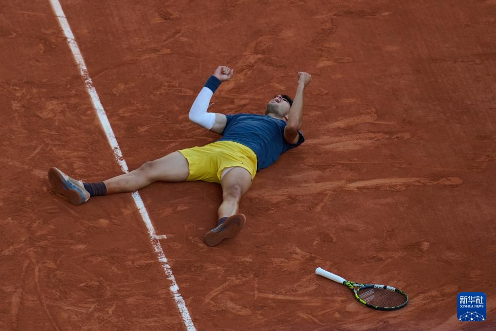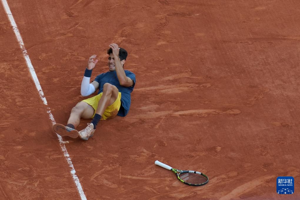 当日,在2024法国网球公开赛男子单打决赛中,西班牙选手阿尔卡拉斯3比2战胜德国选手兹维列夫,获得冠军。